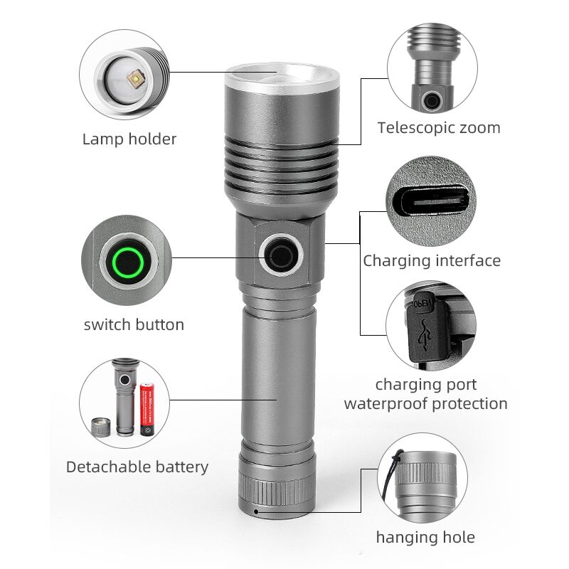 High Power Camping Waterproof rechargeable led torch Set Small flashlight Tactical Torch battery Telescopic Zoom Flashlights